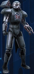 Primarily designed to combat force users the ten foot tall Purge trooper's main weapon is an energy blade extending from its right wrist (resembling a small lightsaber), it is also armed with an arm mounted force field and a shoulder mounted seeker missle launcher. Due to their size and strength if they get close enough they will attempt to pick up an opponent and hurl them to the ground.